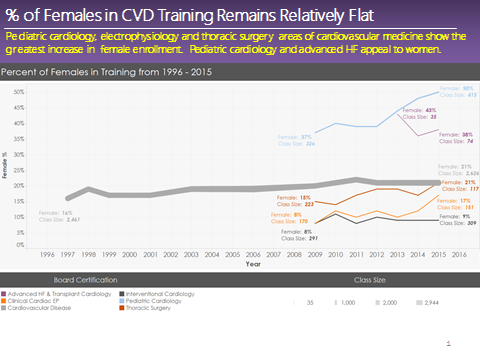 PV: Over the past decade, numbers of male and female trainees during medical school years are approximately equal. However, the percentage of female trainees drops as we go into a specialty field like cardiology and further into its sub-specialties particularly interventional cardiology and electrophysiology. A surprising fact is that only 20 percent of cardiology FITs and a mere 9 percent of interventional cardiology FITs are women. Even more surprising is that only 10 percent of Board certified cardiologist members of the ACC are women. What do you think is the main reason behind these gender differences and how can we decrease this gap?